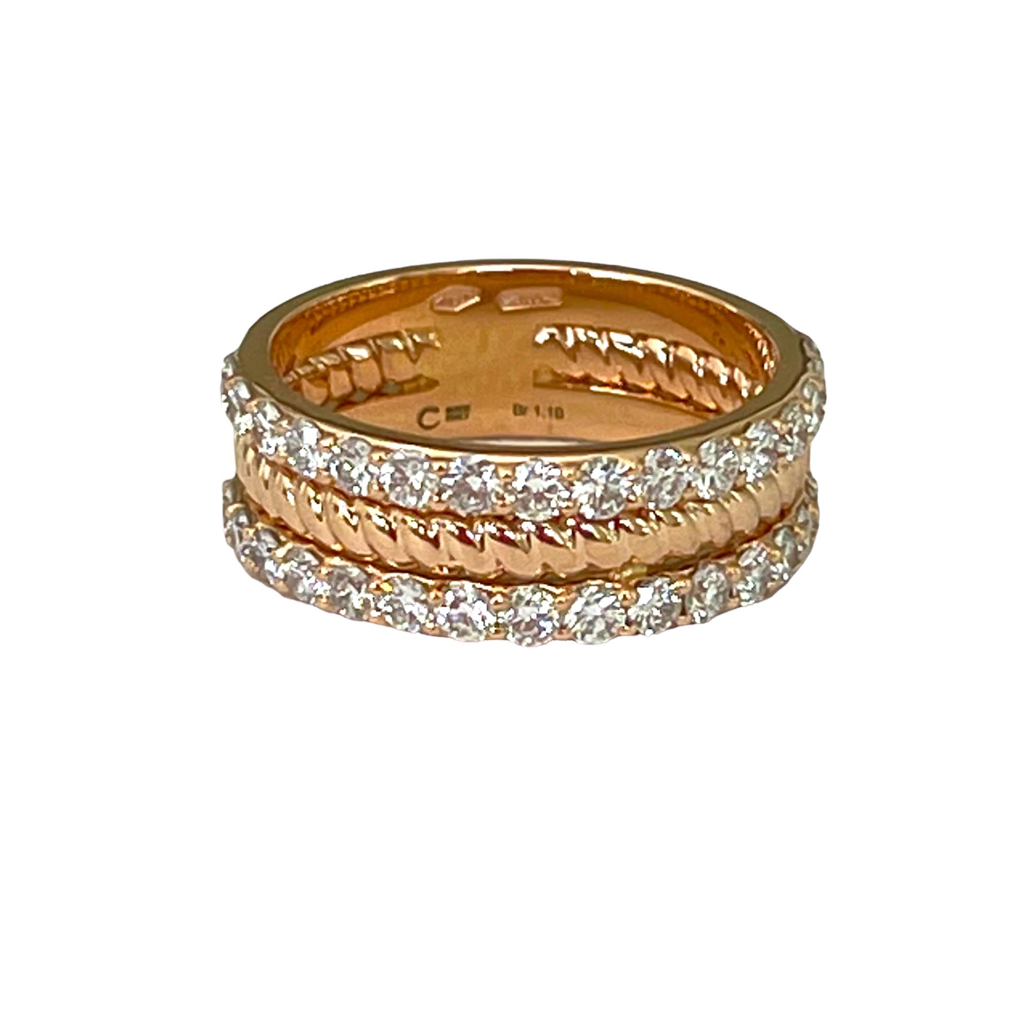 Anello fascia doppia veretta in oro rosa 18kt con diamanti taglio brillante.
