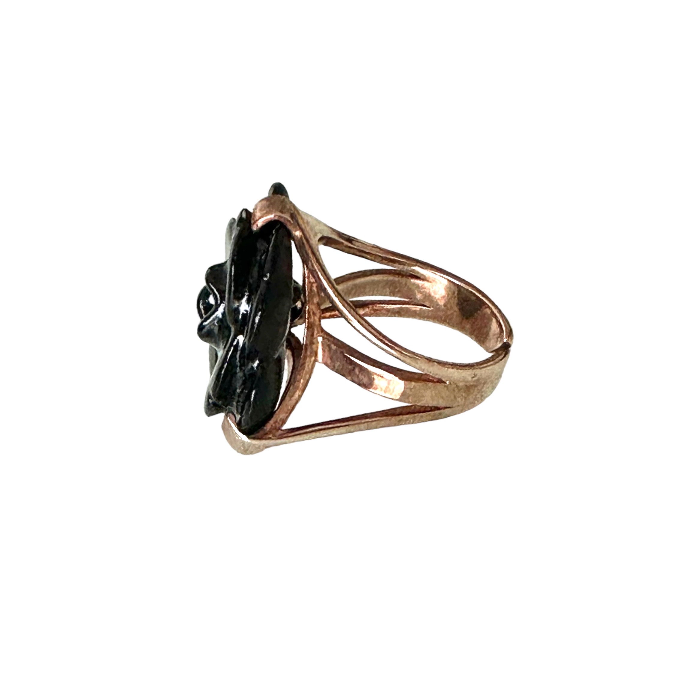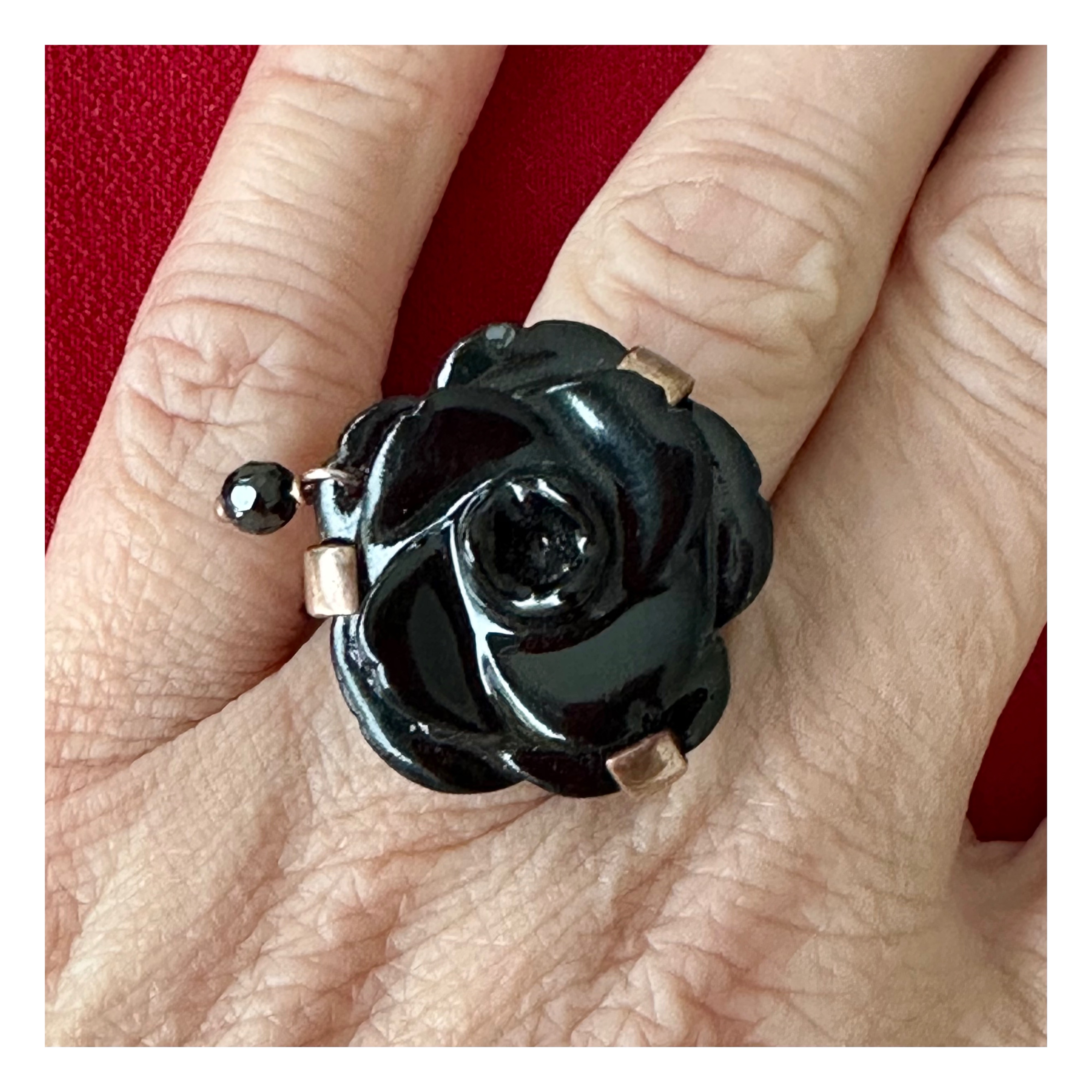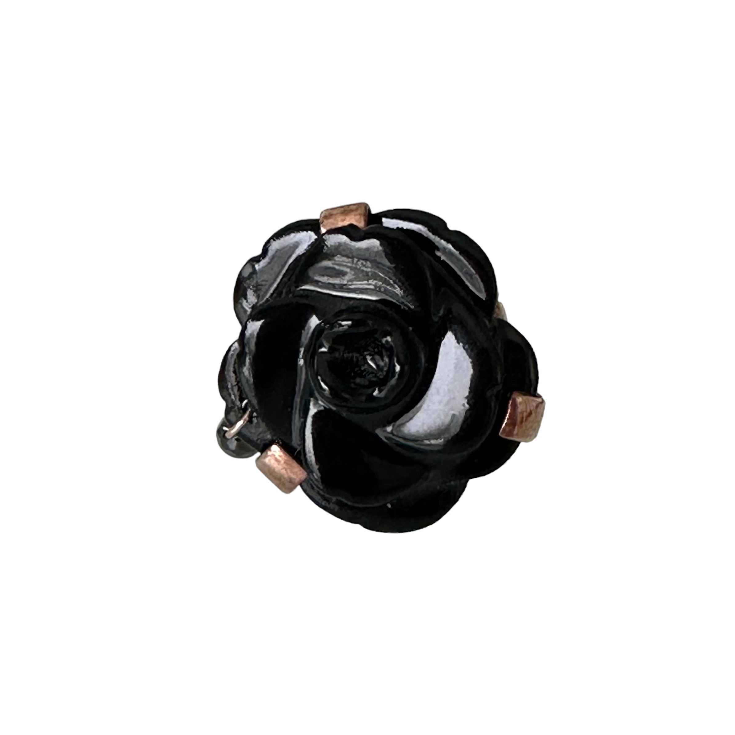 Anello camelia in argento 925 placcato oro rosa con onice.