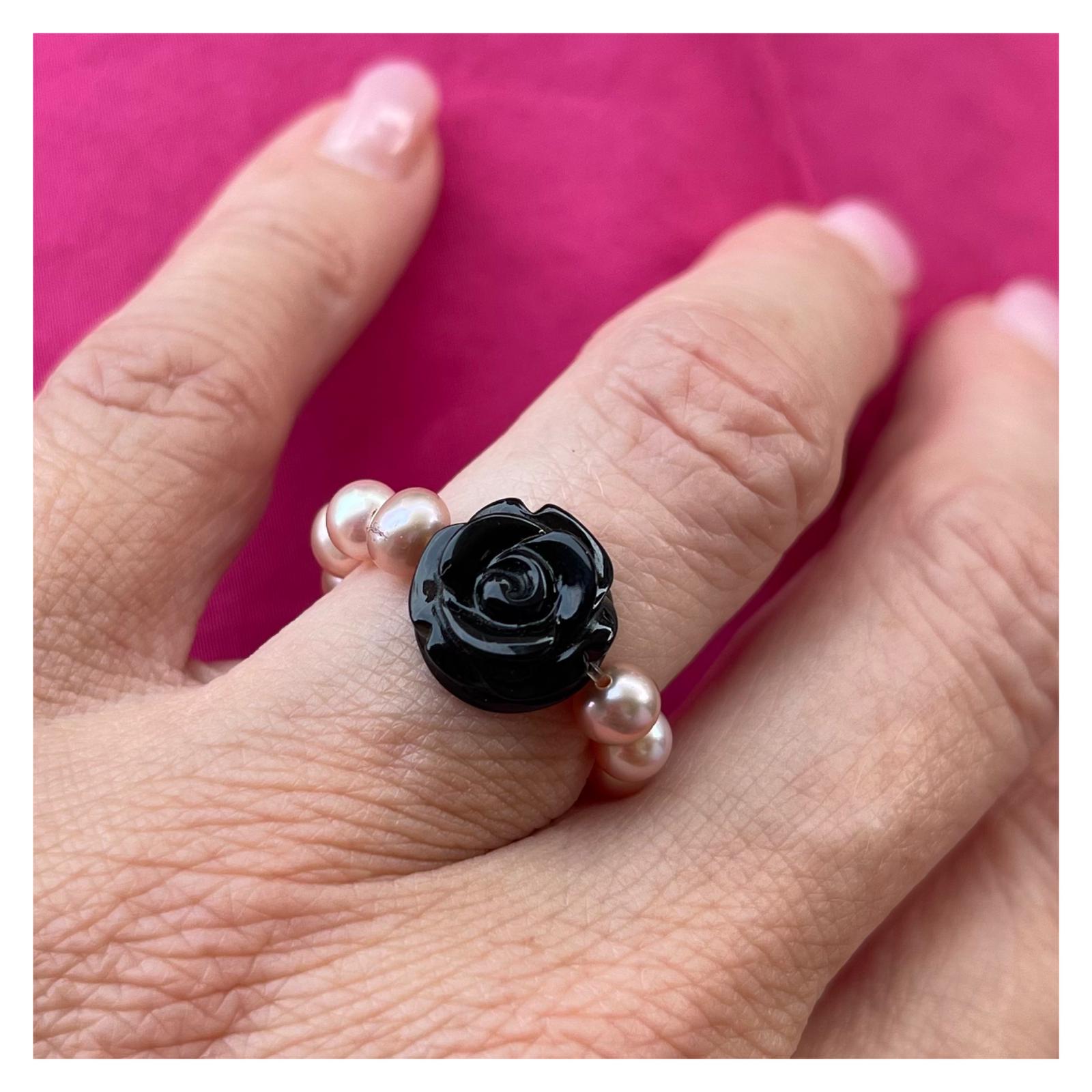 TAG: Tags #mimì #anello #ring #perle #pearls #agata #nera #agate #black #elastica #elastic