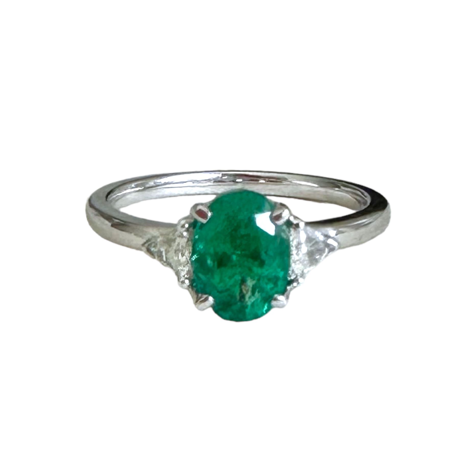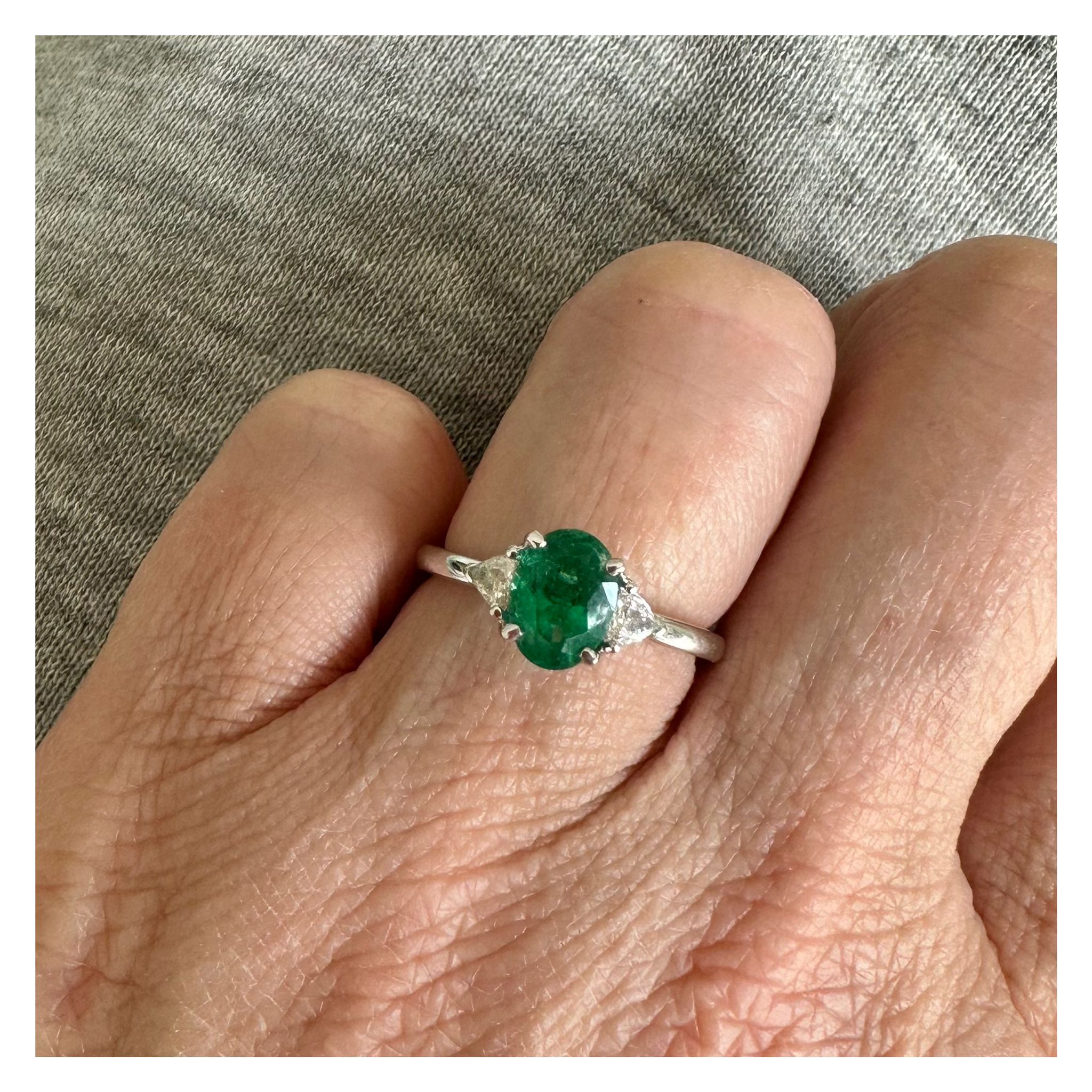 Anello in oro bianco 18kt con smeraldo taglio ovale e diamanti.