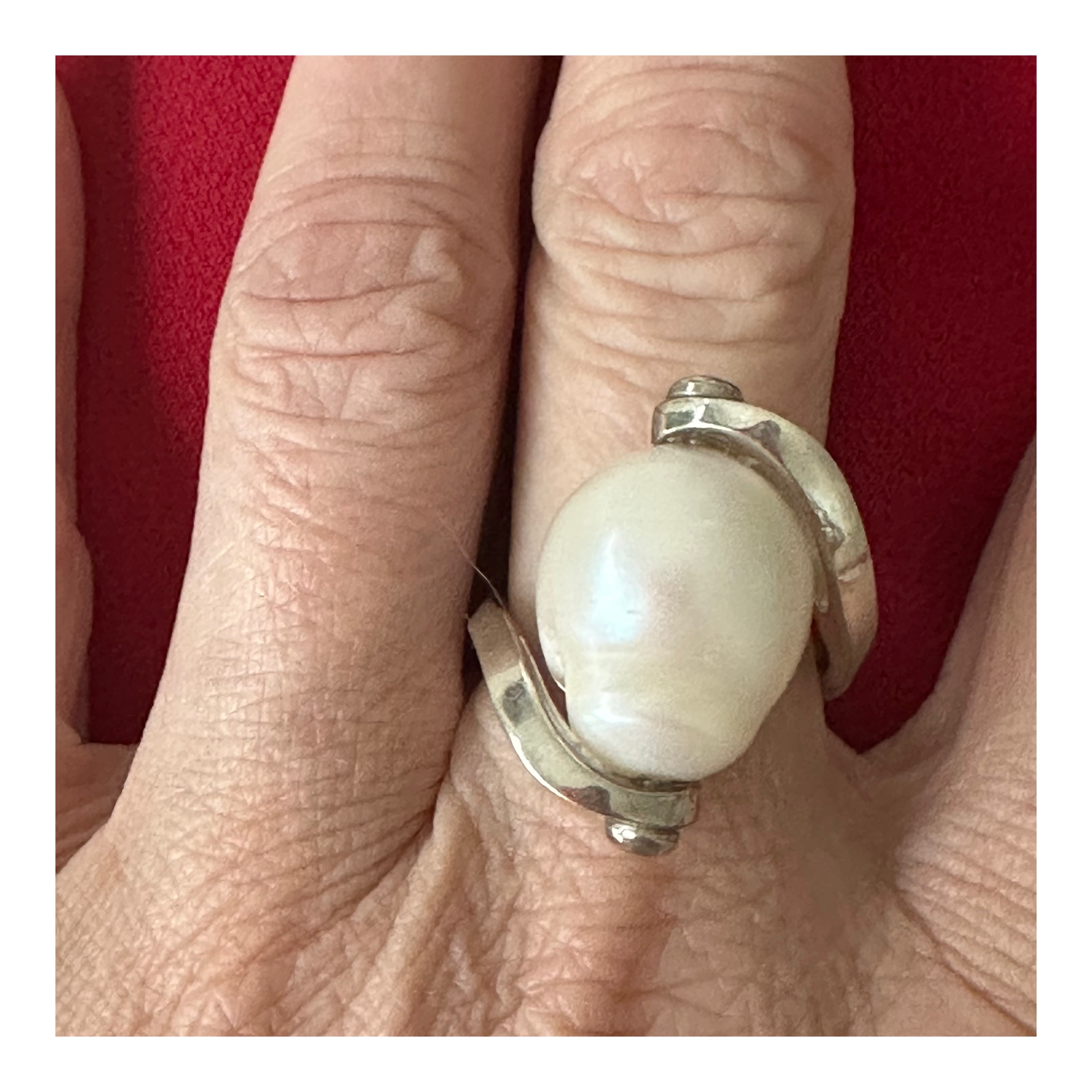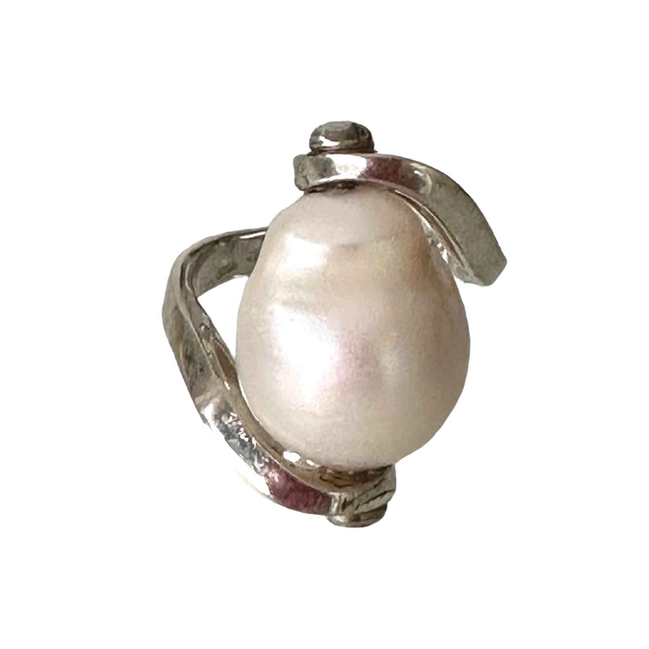 Anello in argento 925 con perla barocca bianca.