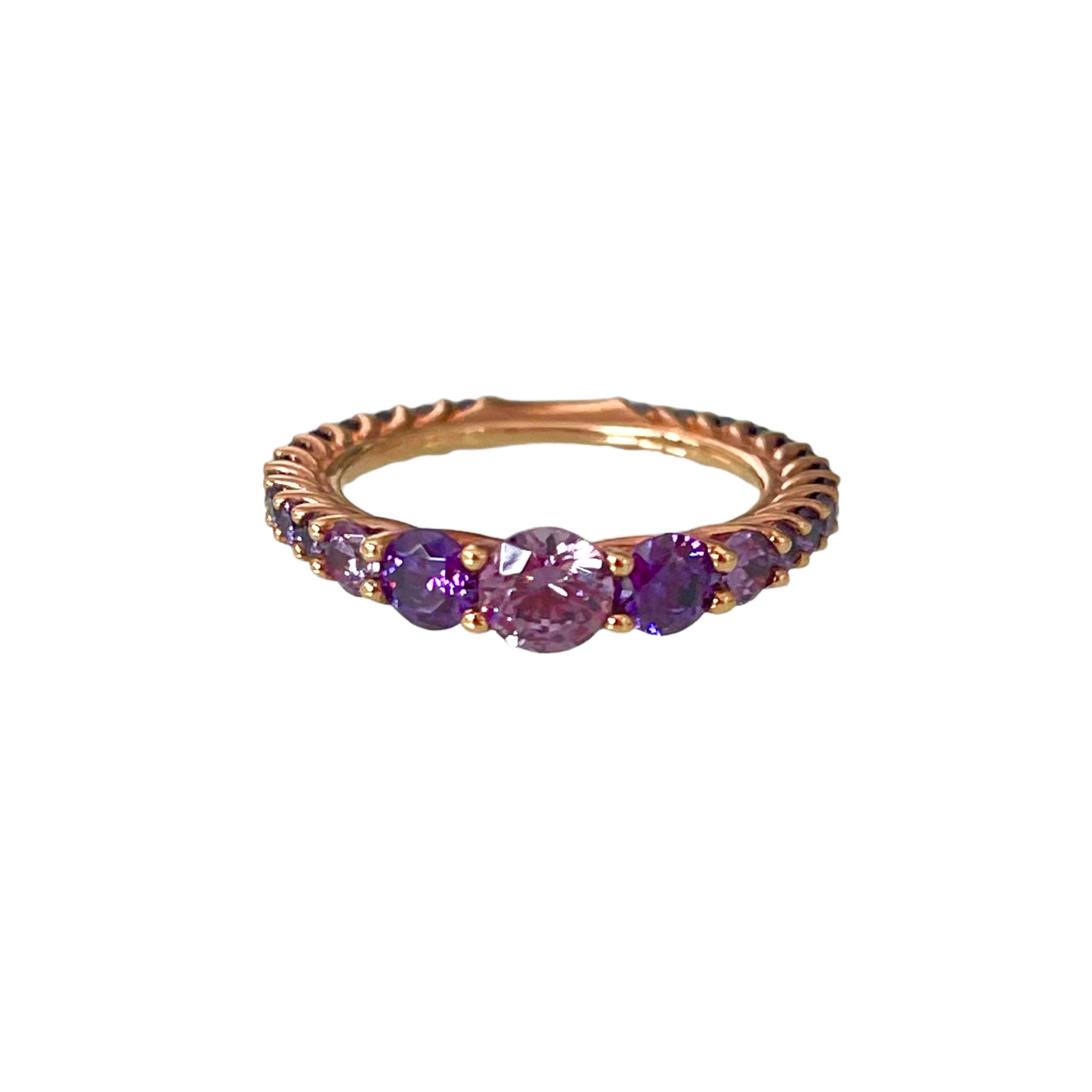 Anello veretta a scalare in argento 925 placcato oro rosa con zirconi viola.
