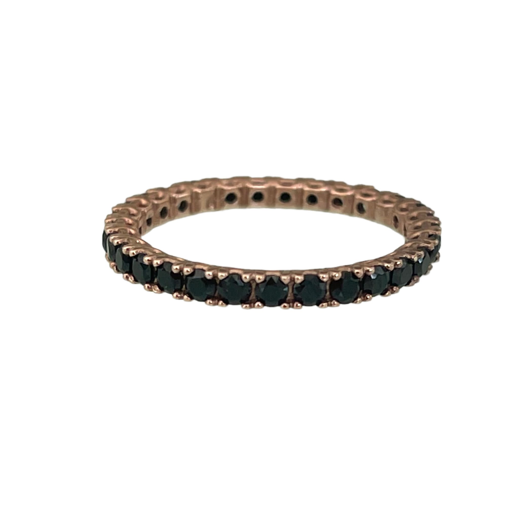 Anello veretta in argento 925 placcato oro rosa con zirconi neri.