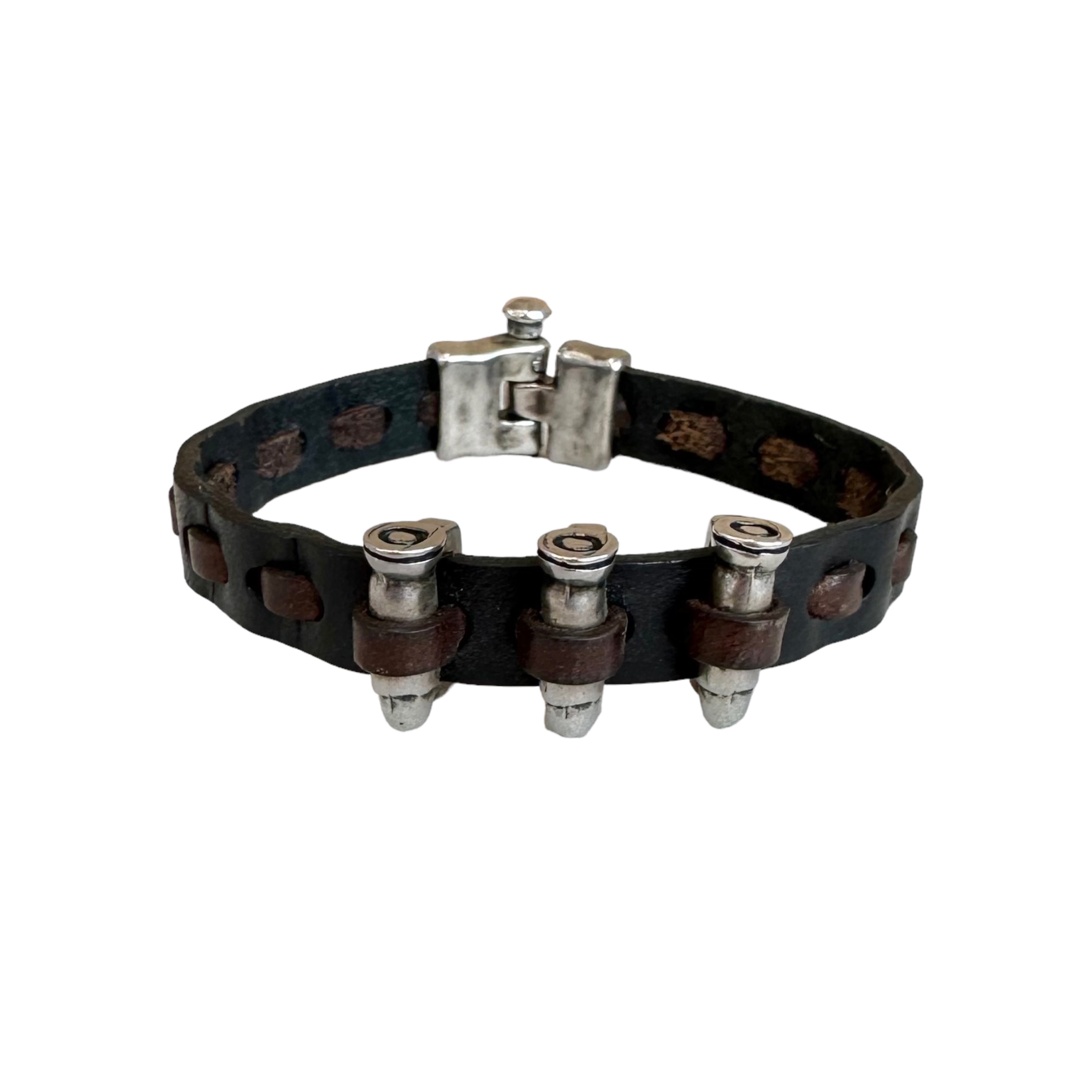 TAG: Tags #unode50 #bracciale #bracelet #argento #silver #metallo #metal #pelle #piel #leather #marrone #brown #balando #proiettile #gun #pistola