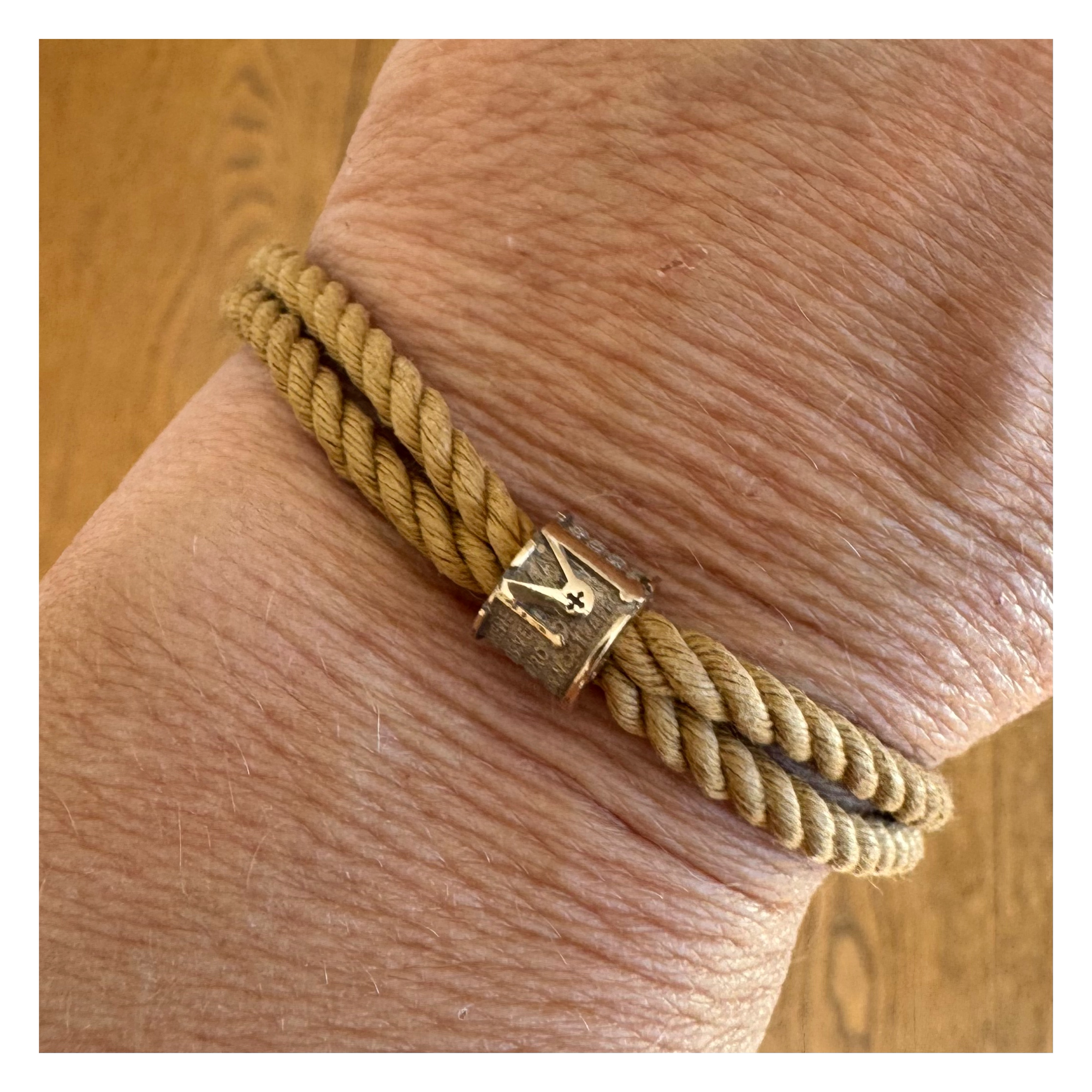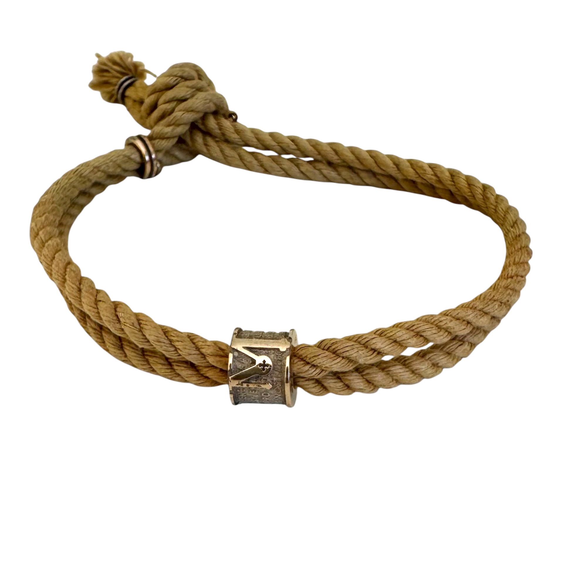 Bracciale INCIPIT FILUM Mater TUUM in Cotone Naturale color tabacco ed elementi in Argento. Il nome prende ispirazione dall'idea di realizzare un gioiello che rappresenti la porta d'ingresso all'universo TUUM. Il piccolo capolavoro riprende fedelmente il design inconfondibile dell'anello a fascia con preghiera in latino. Gioiello Made in Italy completo di confezione regalo e certificato di garanzia ufficiale TUUM.
