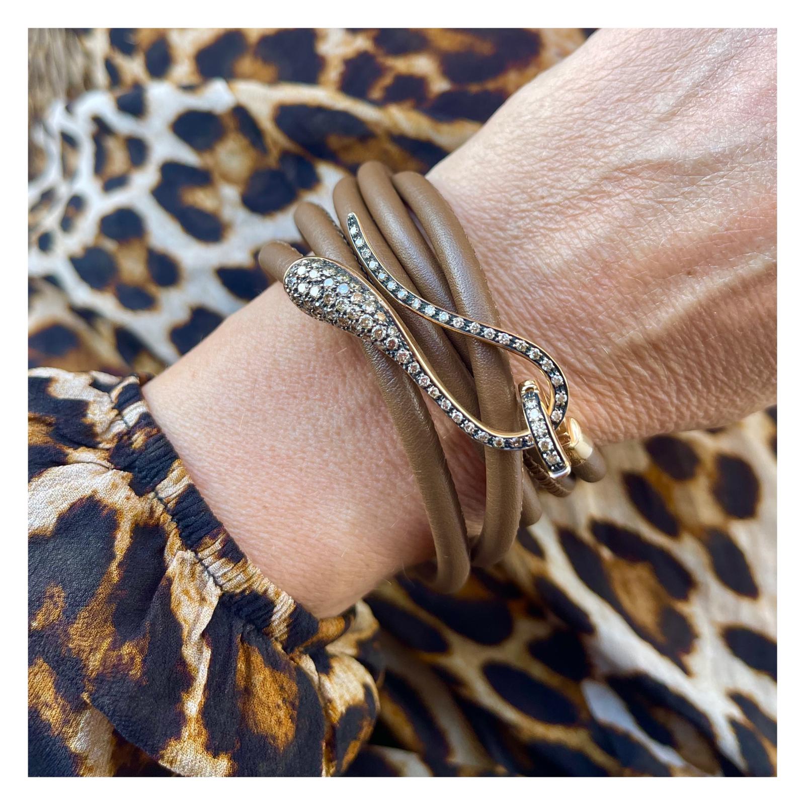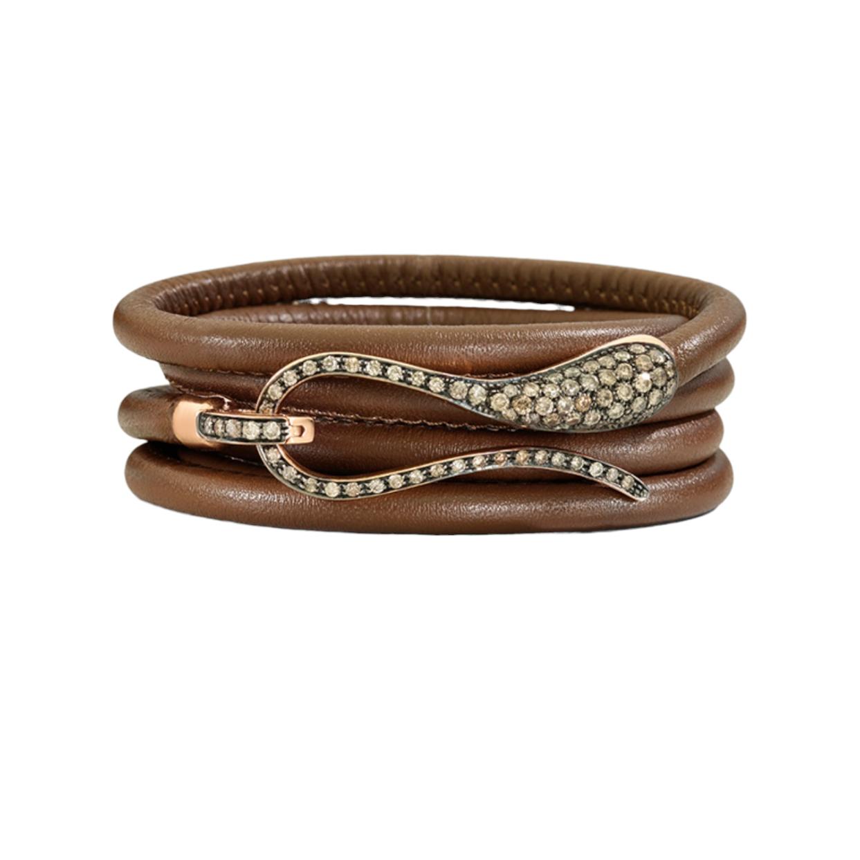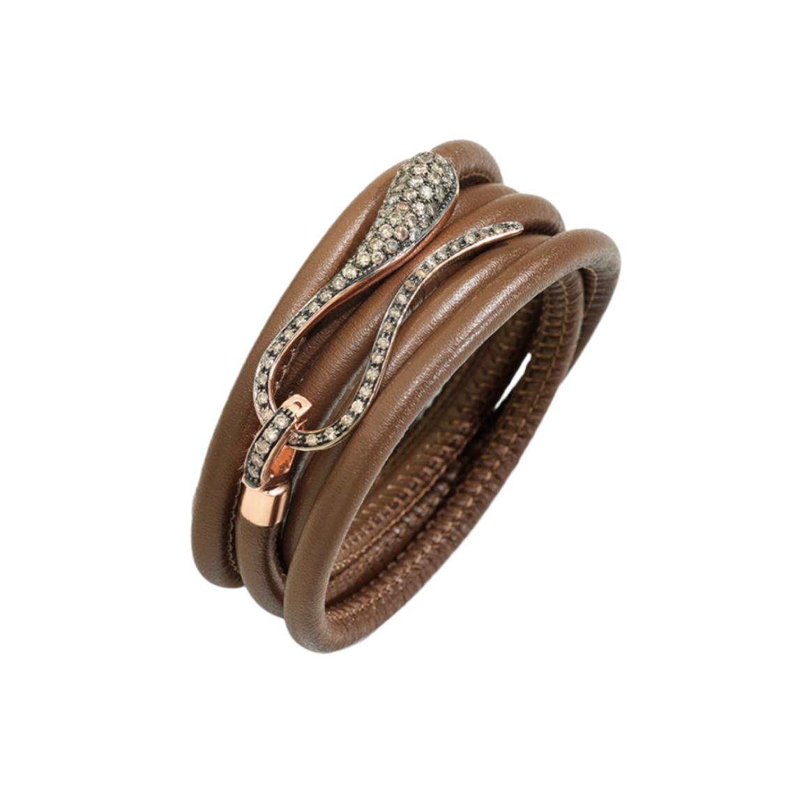 Bracciale in pelle con chiusura in diamanti brown e oro rosa brunito 18k.
