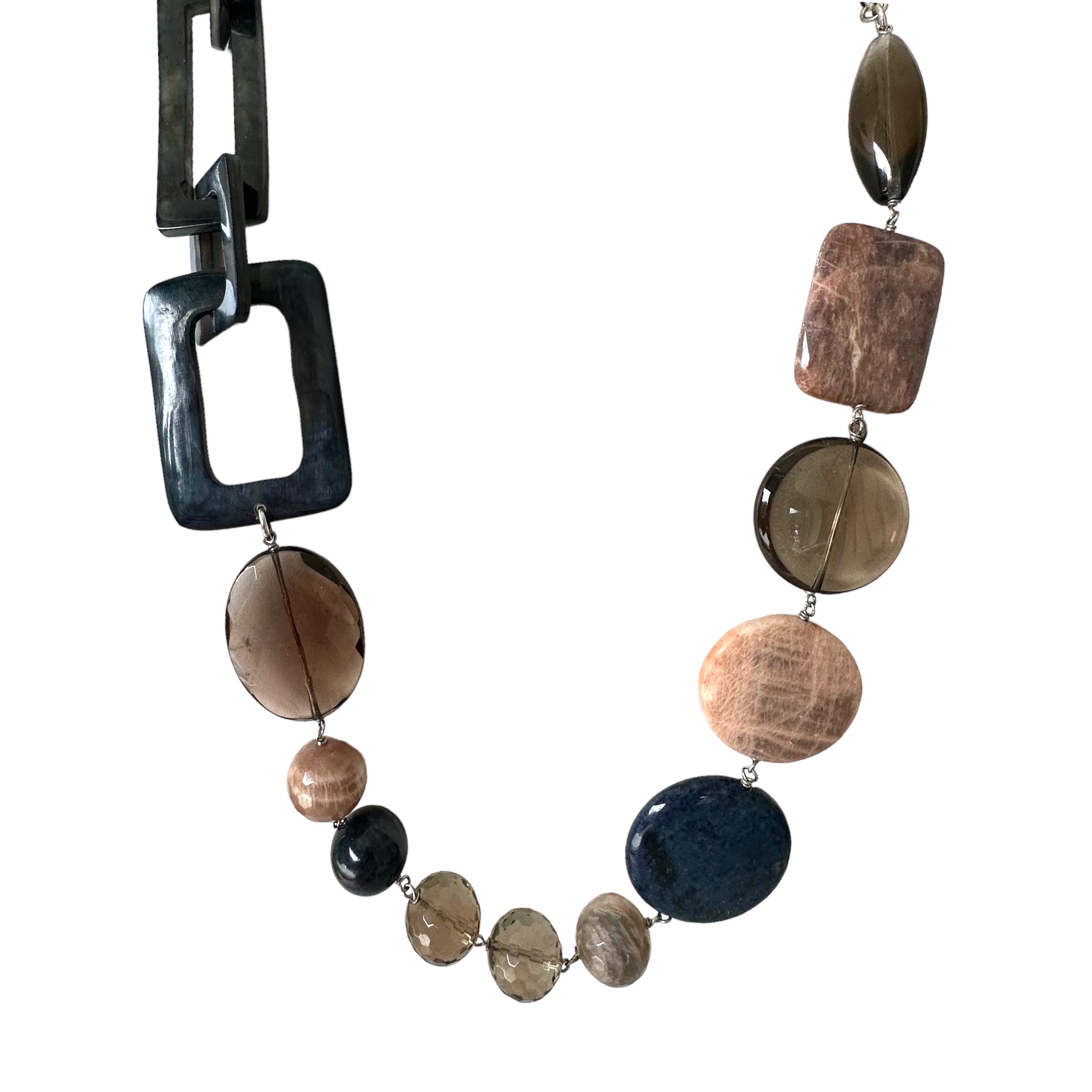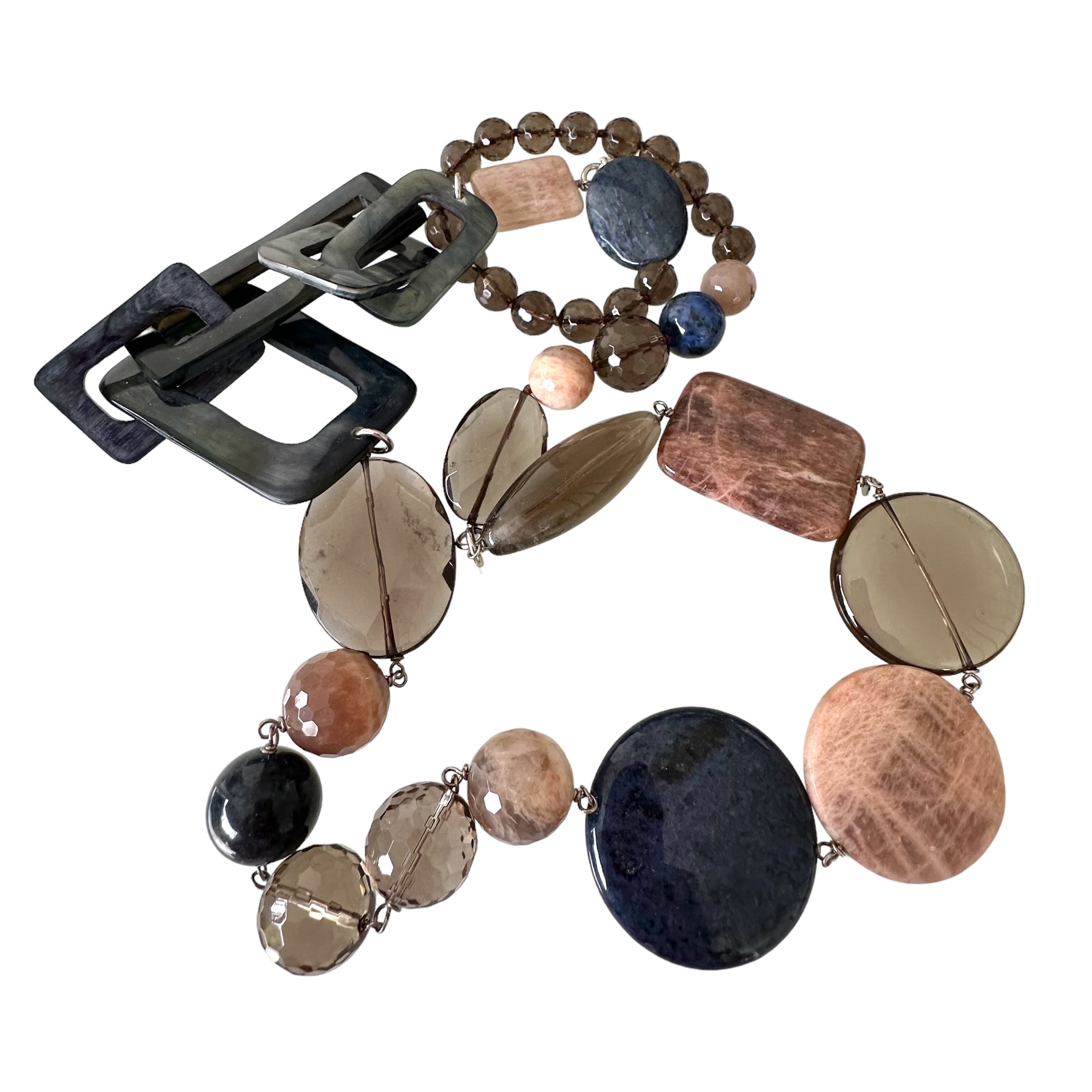 COLLANA GEOMETRIC IN PIETRE DURE E QUARZO FUMÈ
