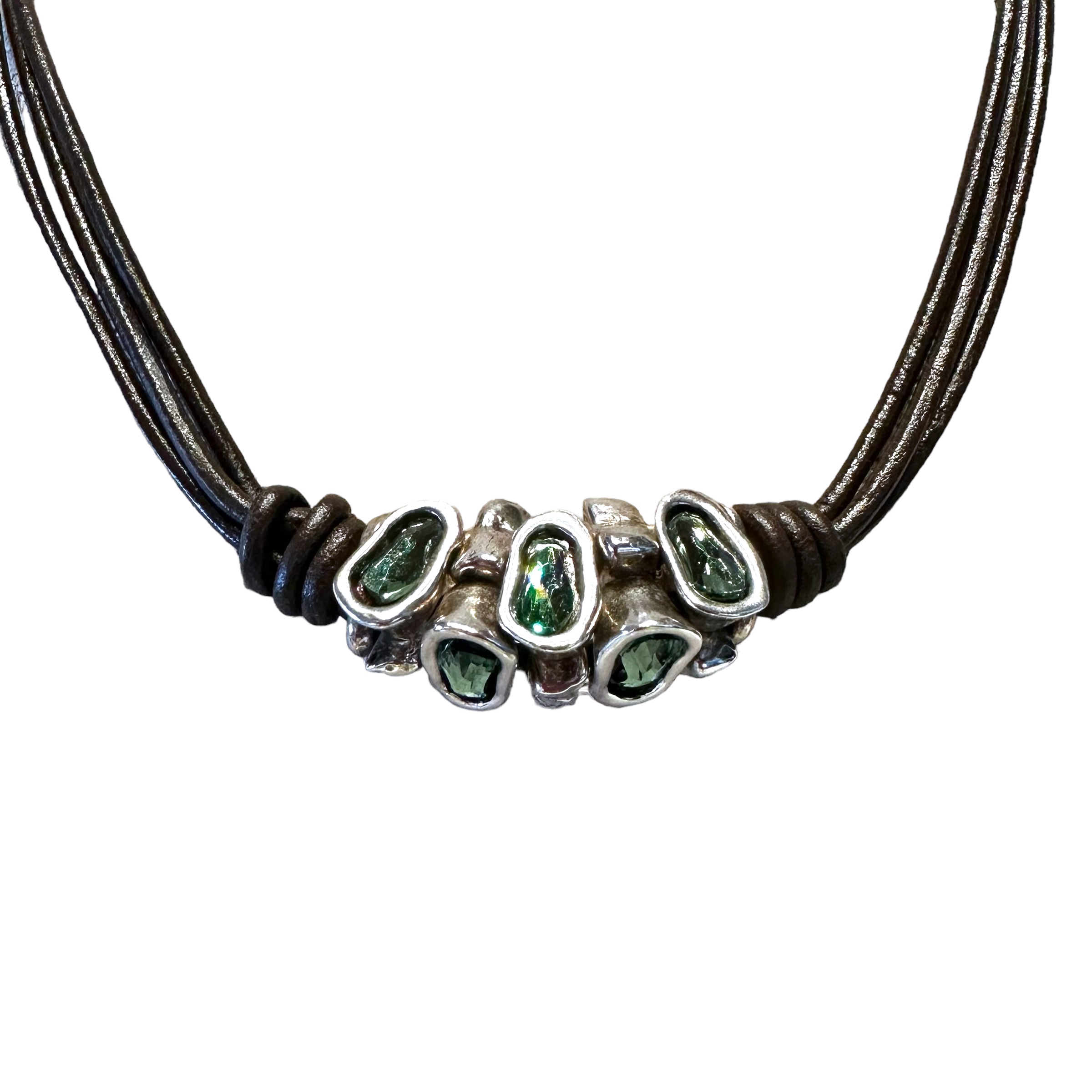 TAG: Tags #unode50 #collana #necklace #collar #instinct #istinto #pelle #piel #leather #marrone #brown #verde #green #argentoù #silver #metallo #metal #swarovski #girocollo