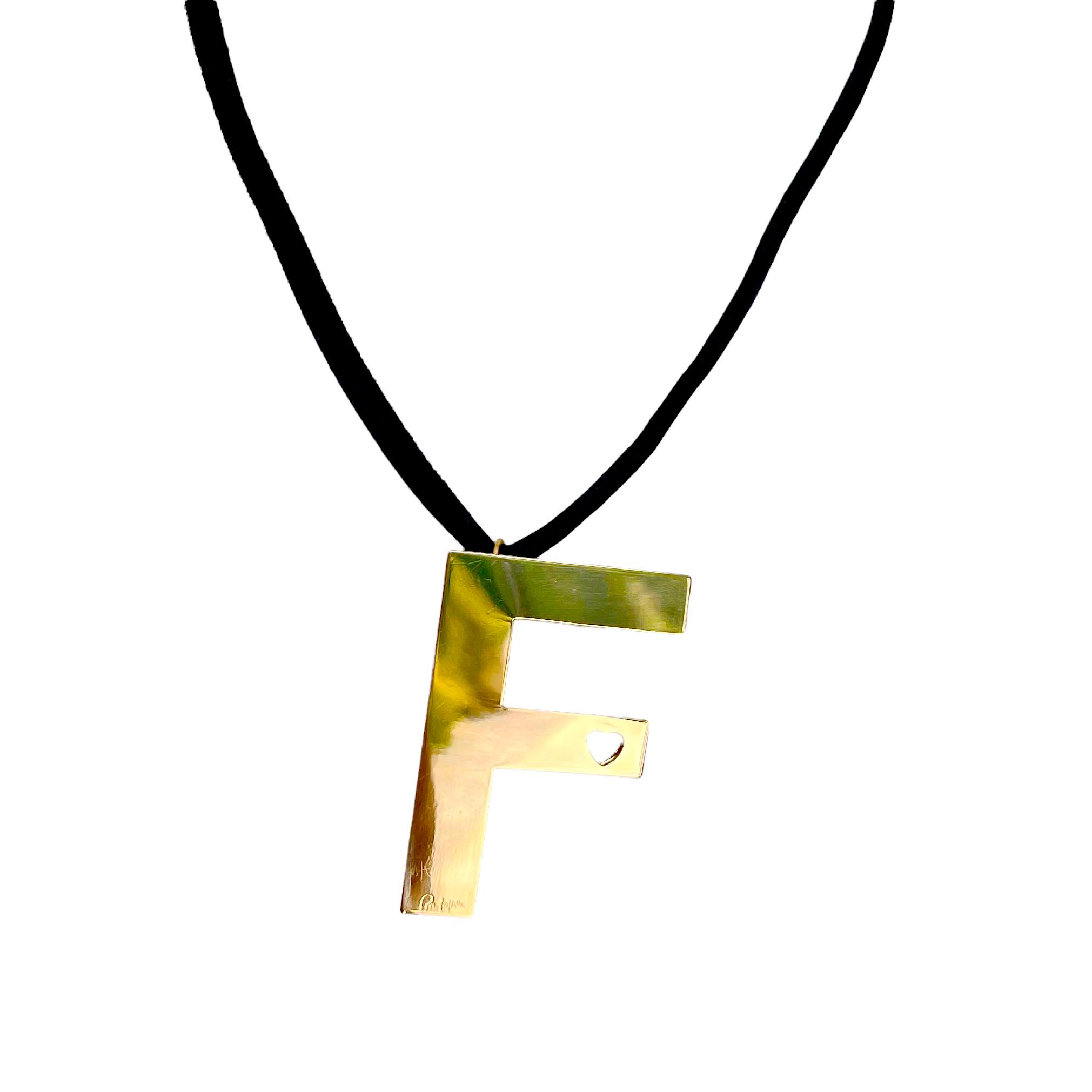 Girocollo semplice lunga 55 cm, elastico nero con lettera F con cuoricino traforato.