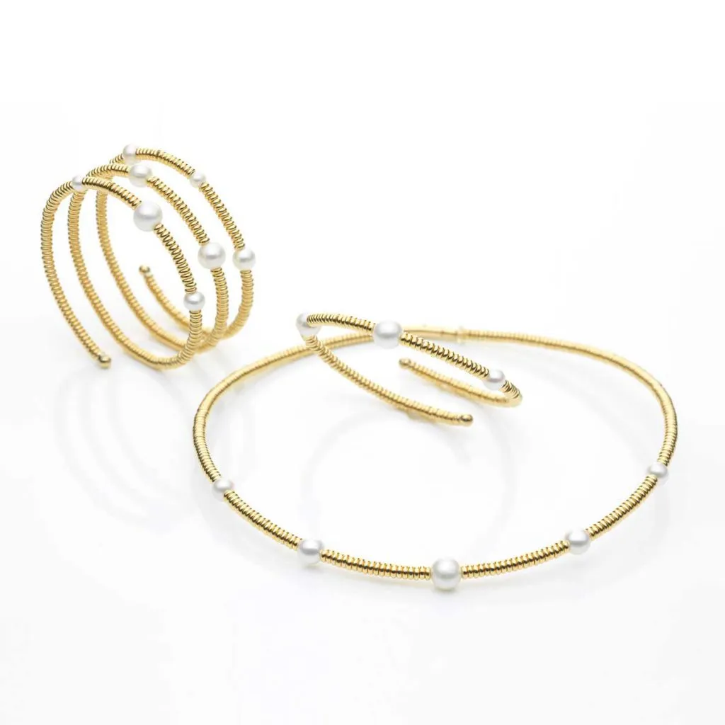 GIROCOLLO VERTIGO ARGENTO DORATO E PERLE