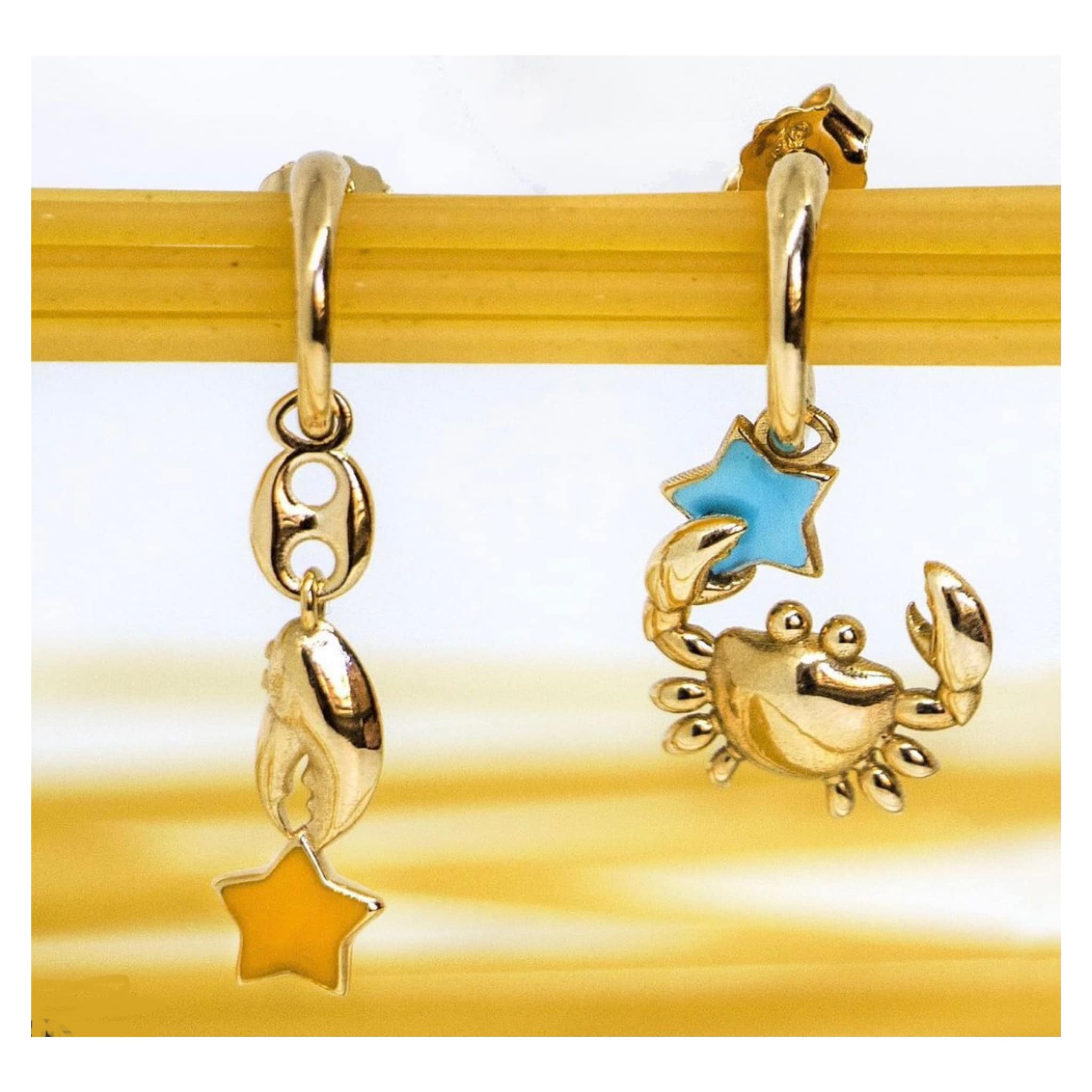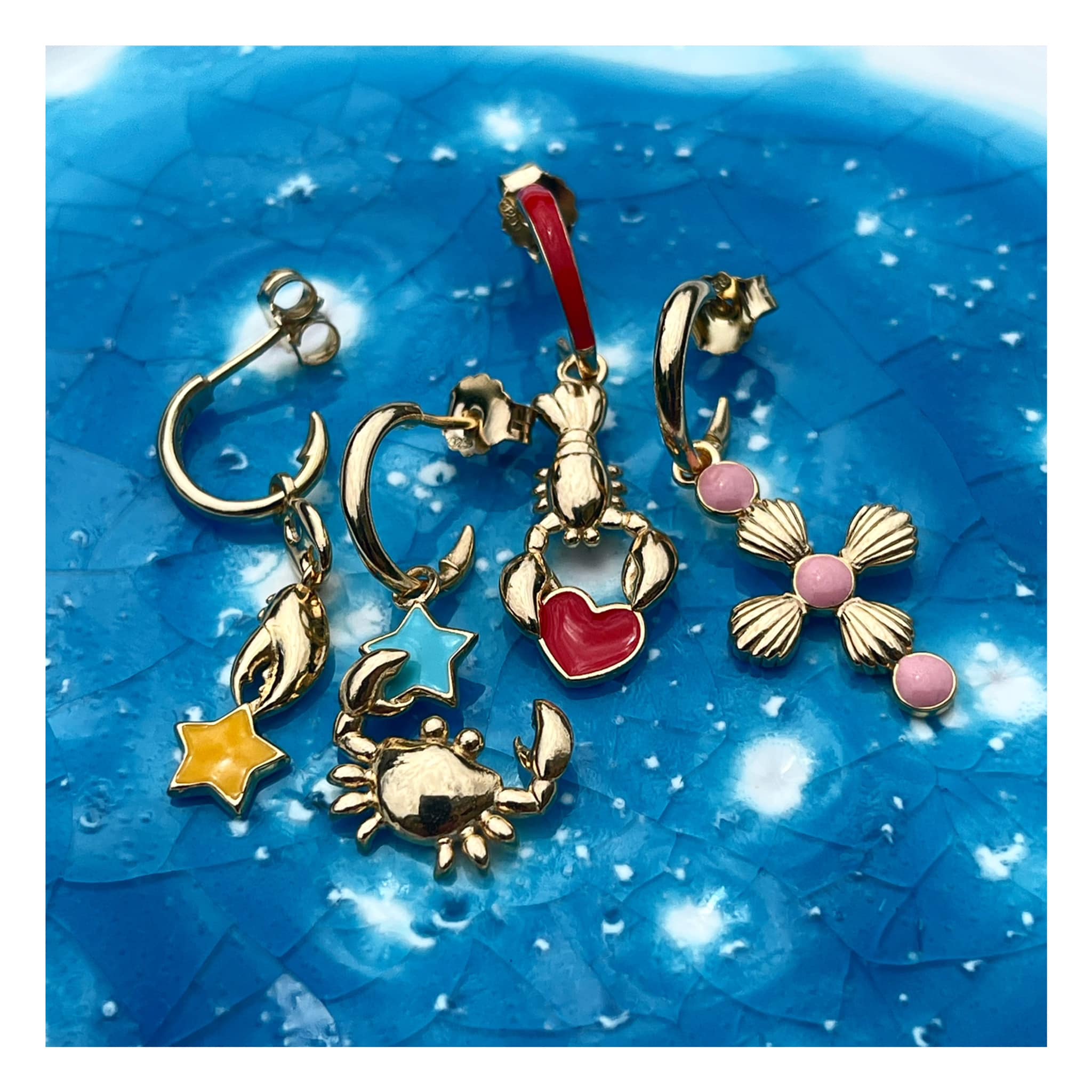 Mono-orecchino con cerchietto Chela. La chela dell'amicizia è uno dei soggetti principali della capsule collection Marine Love di Rue des Mille disegnata in collaborazione con il designer Alessandro Enriquez.