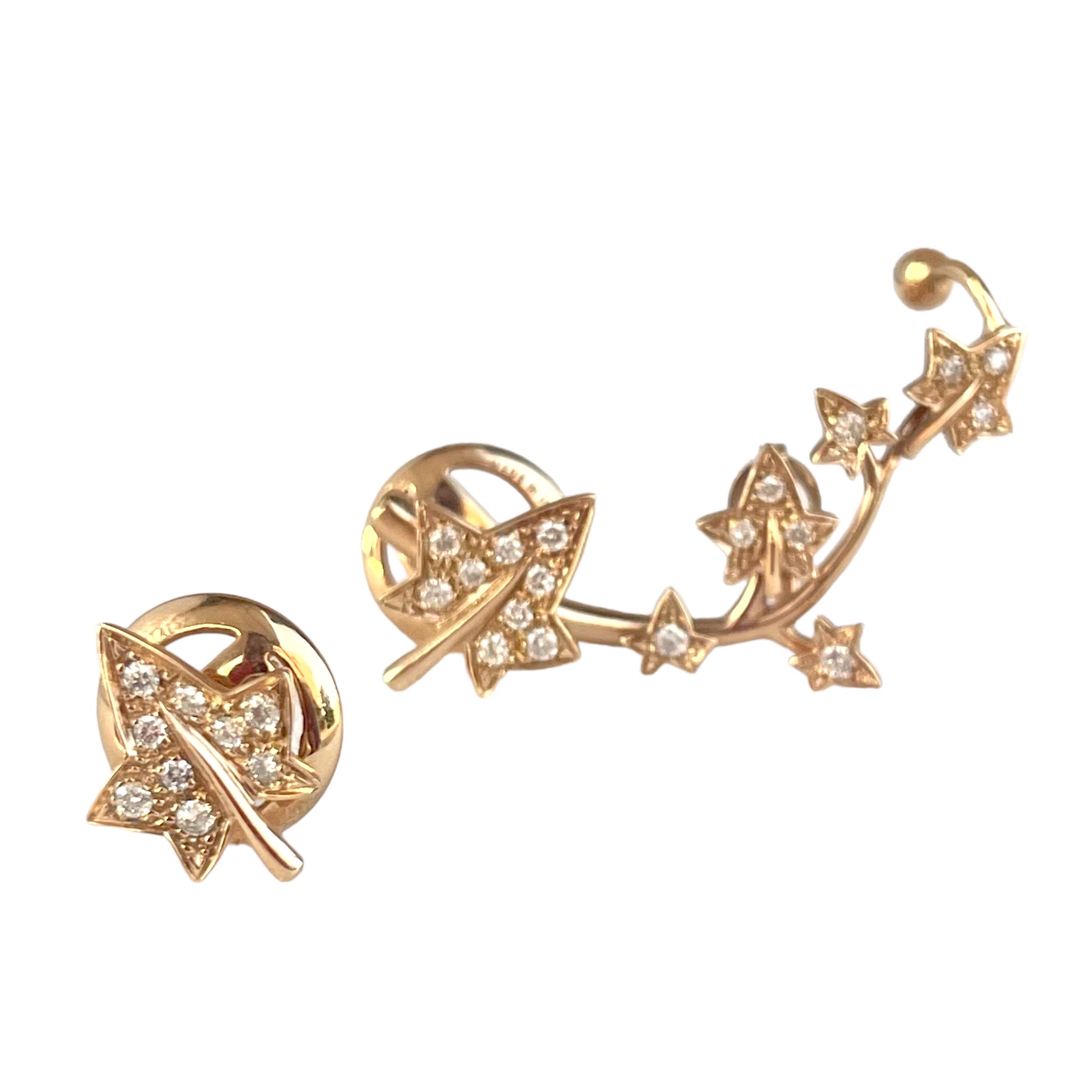 Orecchini asimmetrici leaves in Oro Rosa 18kt con diamanti bianchi.