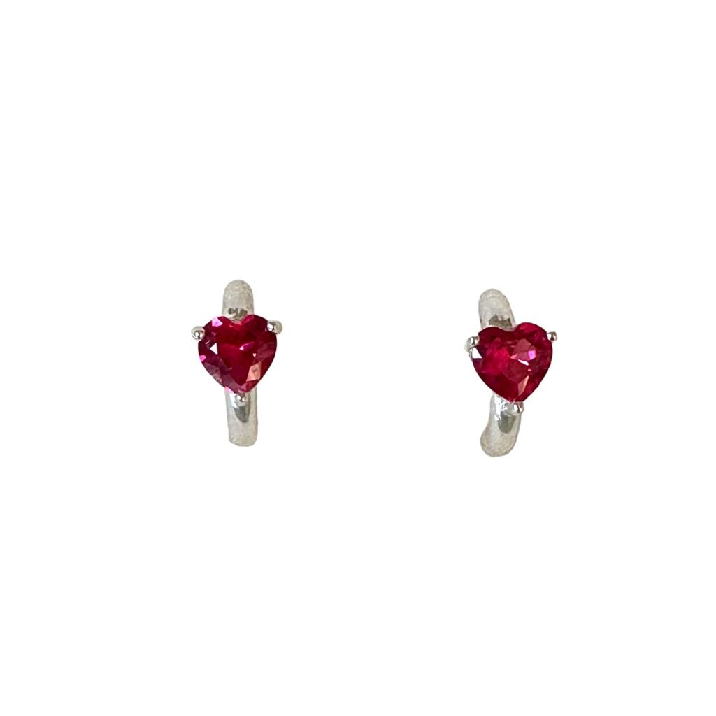 Orecchini cerchietto in argento 925 con cuore di zircone rosso.