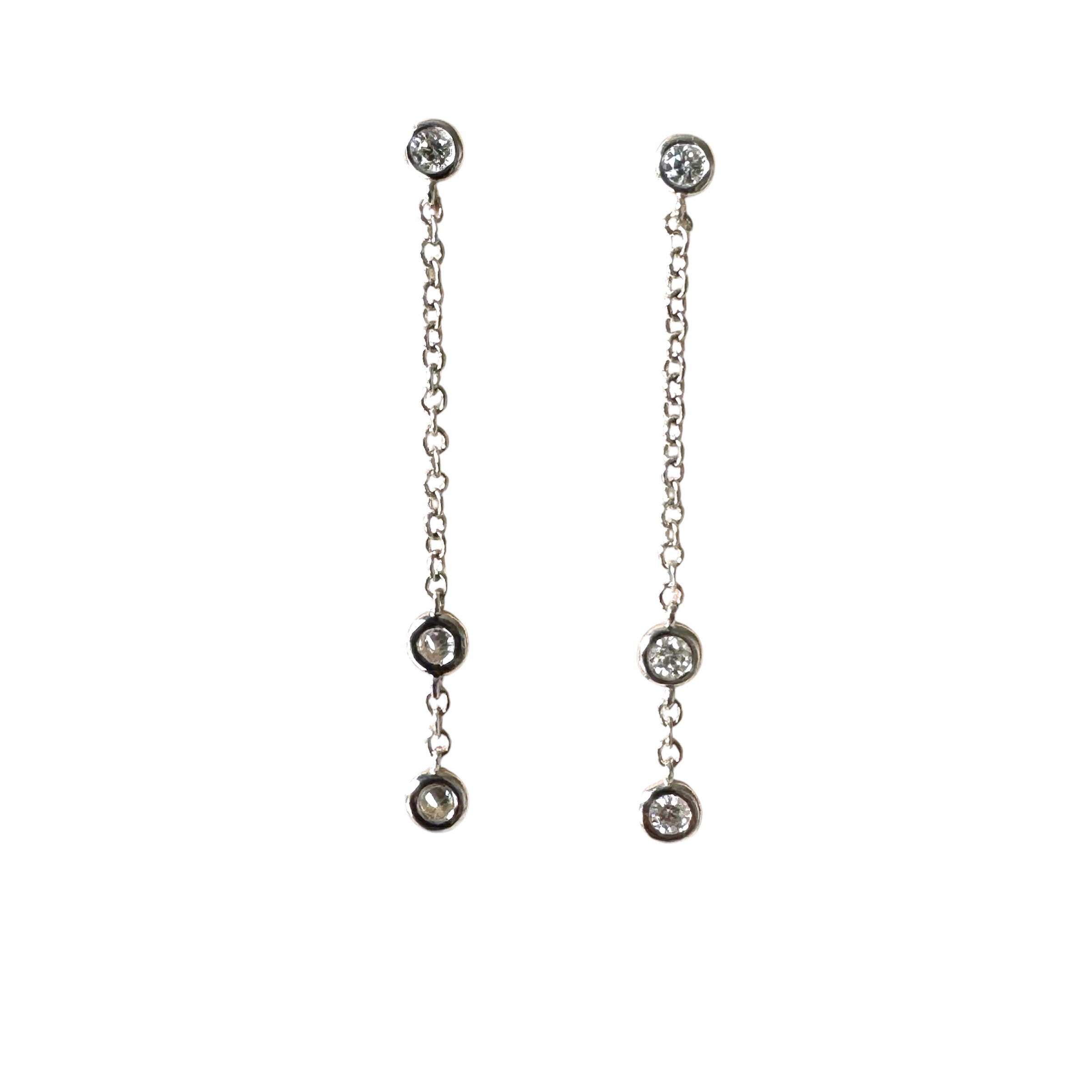 Orecchini pendenti in oro bianco 18kt con diamanti a cipollina.