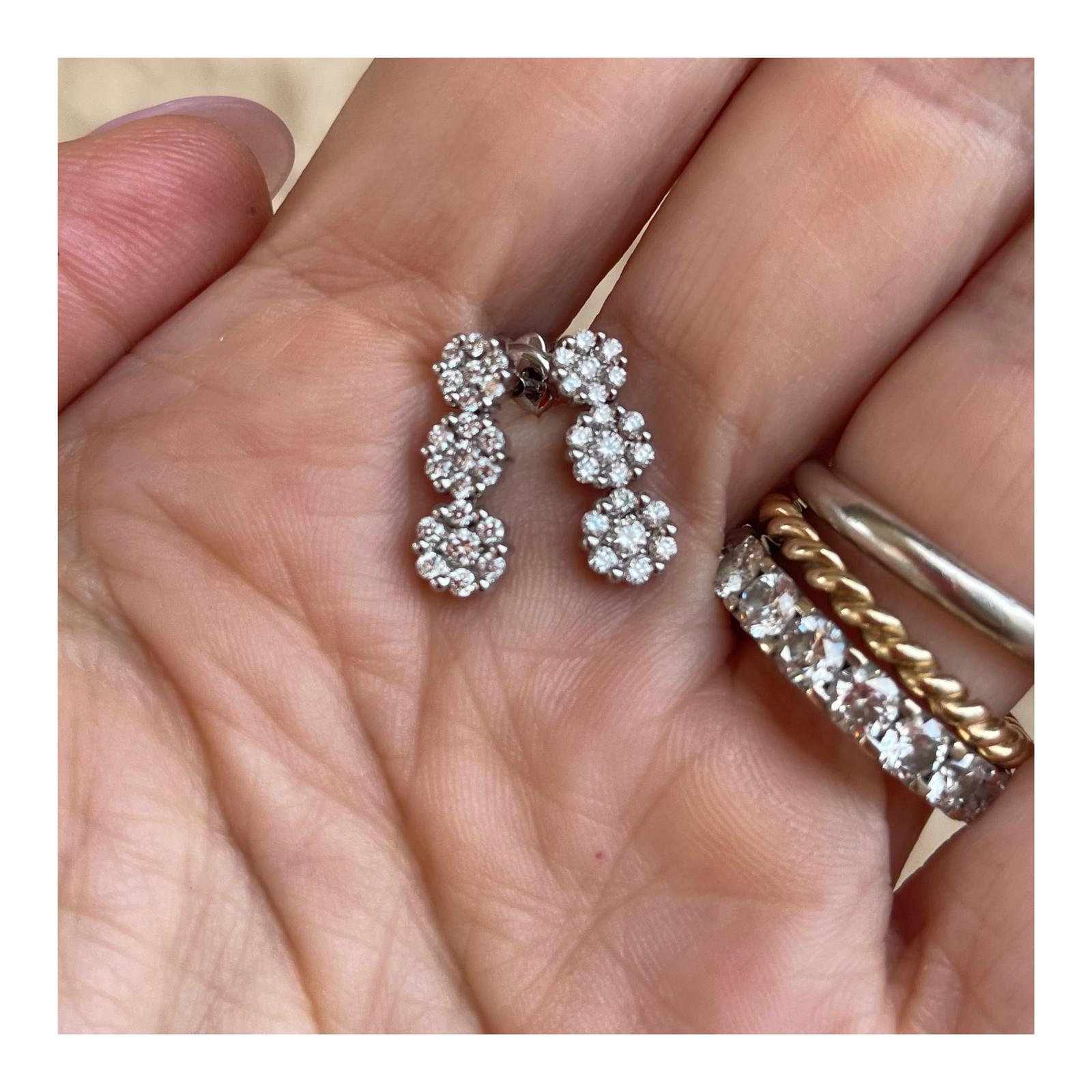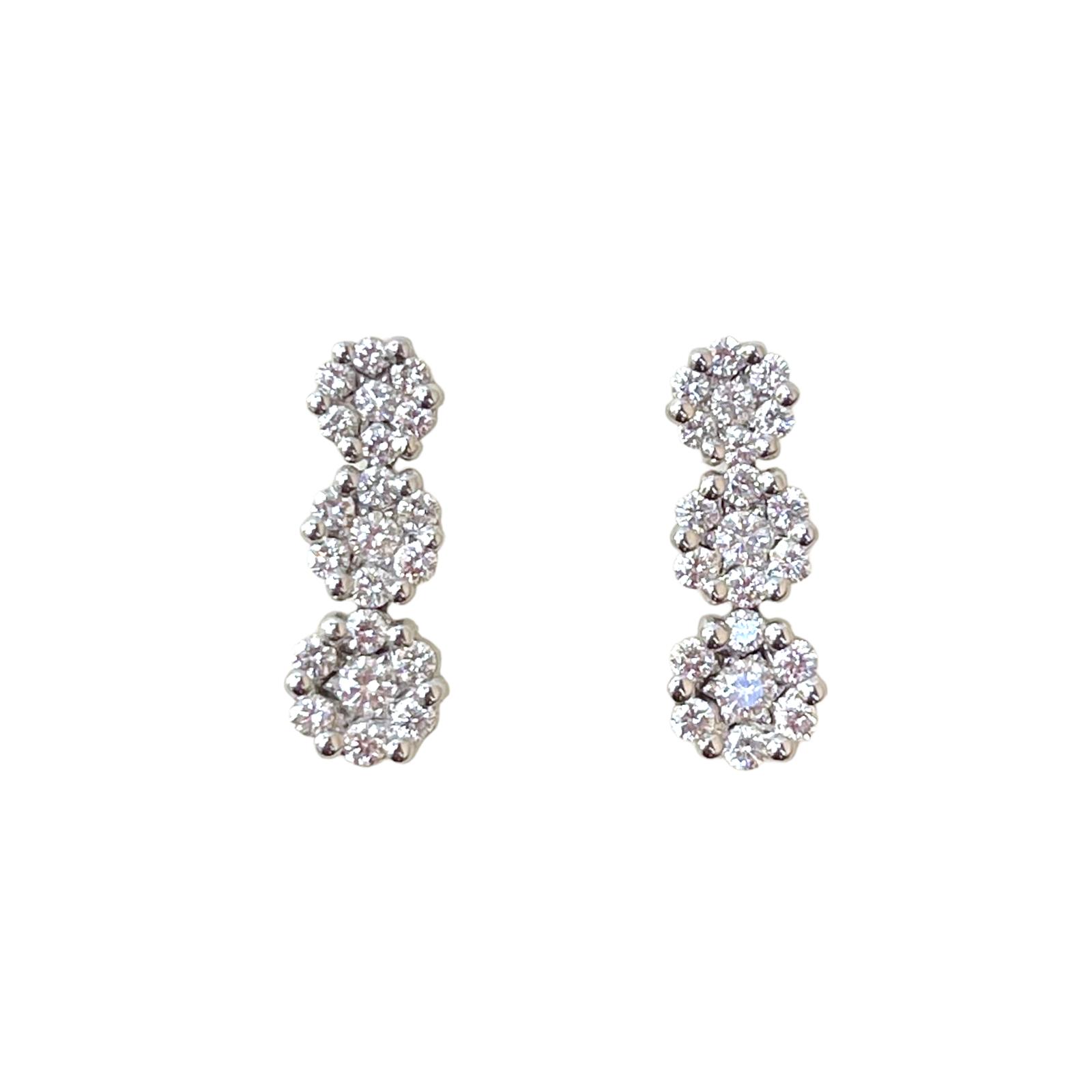 Orecchini tris di fiori di diamanti in oro bianco 18kt.